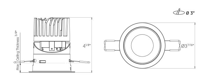 - Accommodates ceiling thicknesses up to 1 ½” without beam clipping.