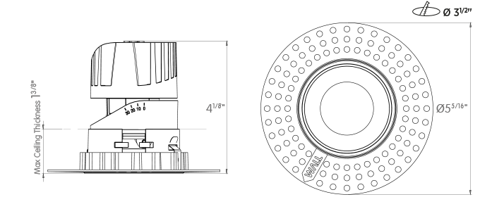 Spec-grade performance LED downlights. Optimal performance and aesthetics for hospitality, high-end residential, and corporate projects. The Chameleon 3" Round Adjustable Downlight Recessed with Trim | Trimless | Millwork, is part of a complete family of 3” fixtures, offering a wide range of mounting options, light distributions, color temperatures, reflector finishes, and optical accessories. Our Downlights family complies with the Build America, Buy America (BABA) requirements.
